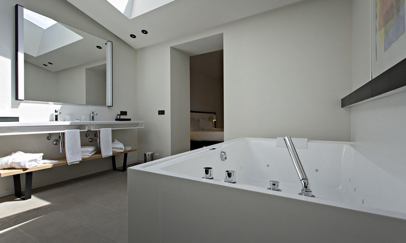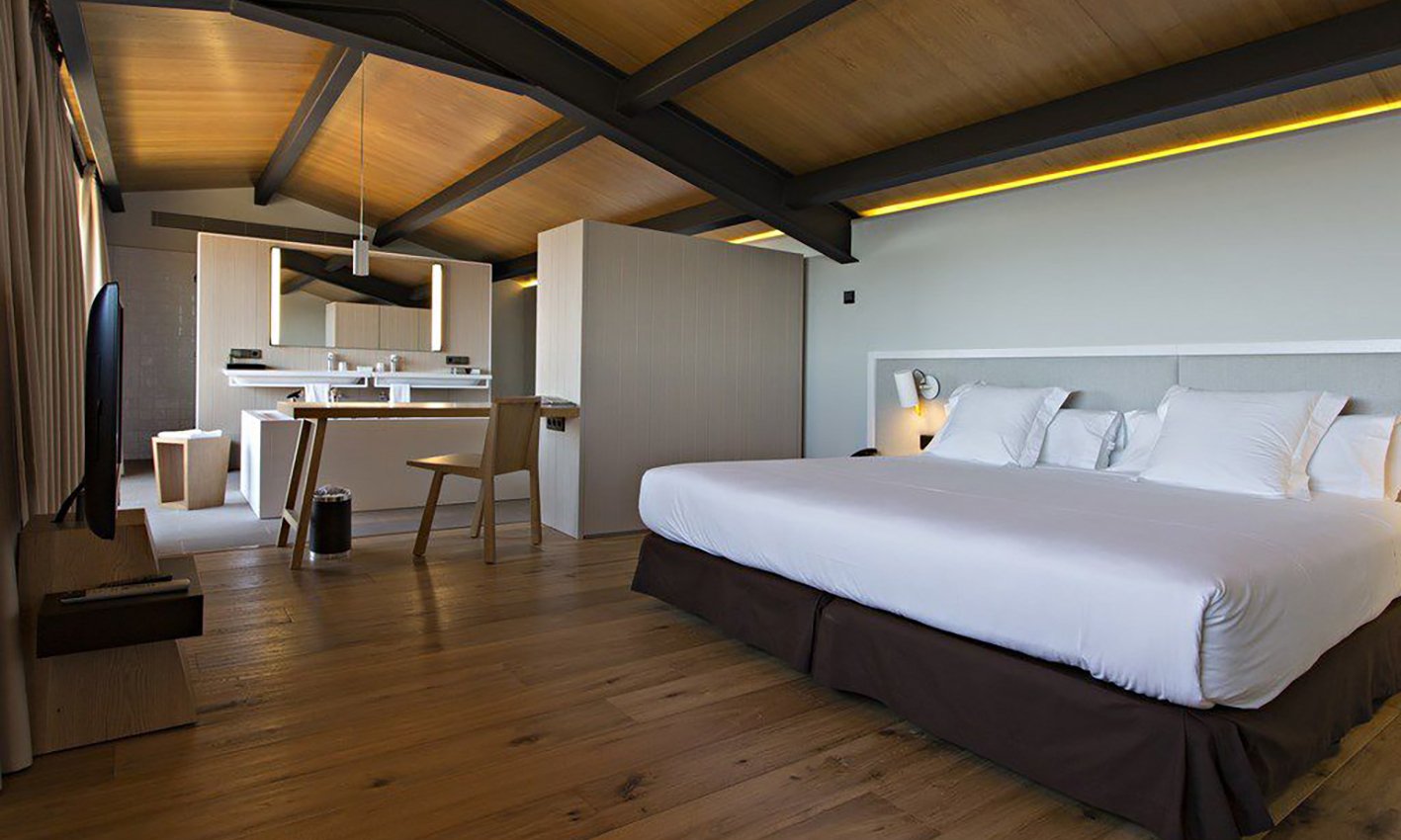 Rodeado de naturaleza, sus espaciosas y modernas habitaciones con jacuzzi cuentan con espectaculares vistas a la plana del Alt Empordà y al Mar Mediterráneo, todas con luz natural gracias a sus grandes ventanales.