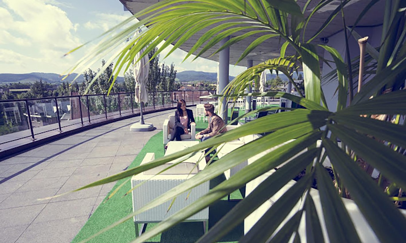 En el Hotel Jardines de Uleta Suites nos adaptamos a sus necesidades, ofreciendo espacios amplios y confortables, como nuestras habitaciones de entre 55 y 80 m2, equipadas como auténticos hogares. Además, contamos con el Patio de Cristal, el Jardín Vertical, la Terraza Mirador y con salones modulables de 2 hasta 600 personas, para acoger eventos de cualquier índole.